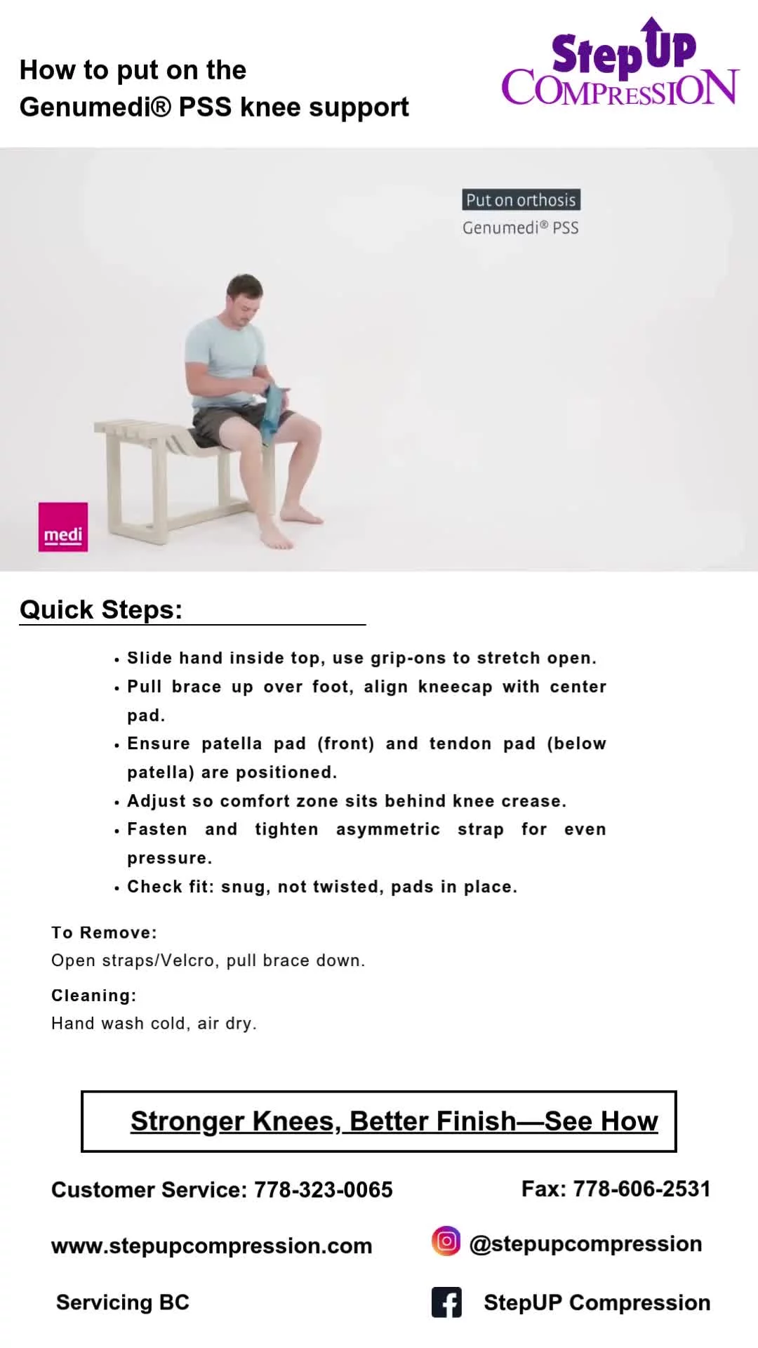 Learn how to put on the Genumedi® PSS knee support with StepUP Compression’s expert step-by-step guide. Our instructions ensure a secure and comfortable fit, so you can make the most of your Genumedi® PSS knee brace. StepUP Compression specializes in premium orthopedic supports and pain relief solutions—follow our tips to improve knee stability, reduce discomfort, and stay active. Trust StepUP Compression for reliable advice on knee health, injury recovery, and getting the best performance from your medical supports.